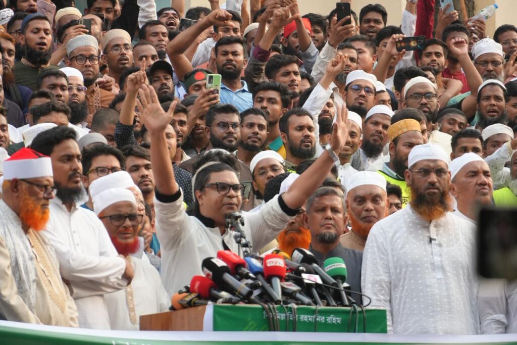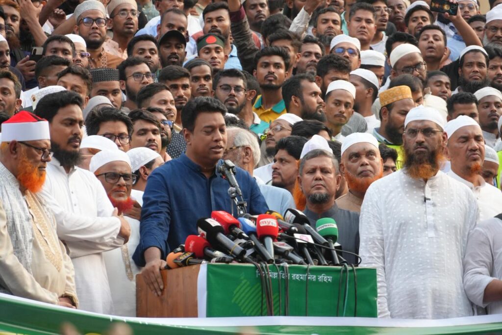 সমাবেশে বাংলাদেশ খেলাফত মজলিসের আমিরর মাওলানা মামুনুল হক বলেন, বিএনপির রাজনীতি সুবিধাবাদের উপর নির্ভরশীল। অন্তর্বর্তীকালীন সরকারের যে অধ্যাদেশগুলো ক্ষমতা বৃদ্ধি করে, তা তাদের পছন্দনীয়, আর যে অধ্যাদেশগুলো জনগণের জবাবদিহিতা নিশ্চিত করে, তা অপছন্দনীয়। তিনি বলেন, নির্বাচনের সময় বিএনপি তলে তলে ‘না’ প্রচার করেছিল, প্রকাশ্যে বলার সাহস তাদের ছিল না।