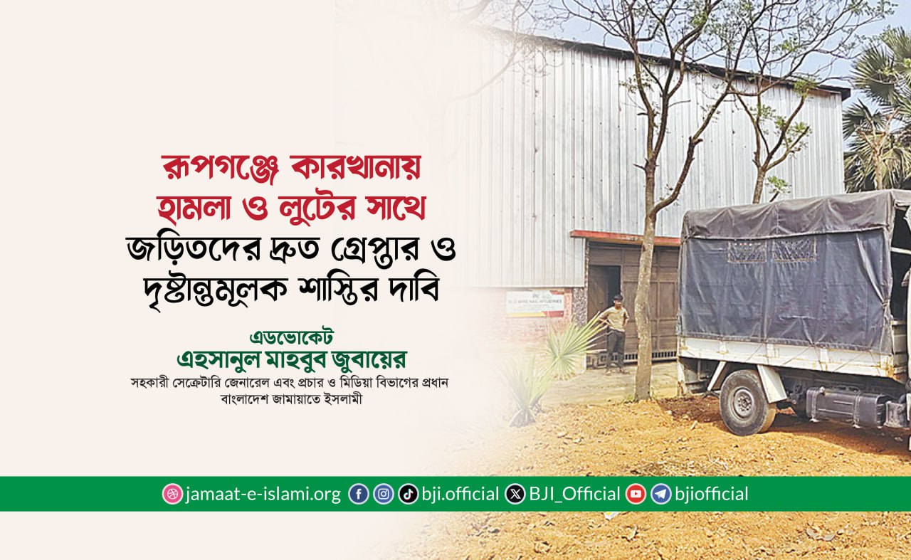 রূপগঞ্জে কারখানায় হামলা ও লুটের সাথে জড়িতদের দ্রুত গ্রেপ্তার ও দৃষ্টান্তমূলক শাস্তির দাবি—এহসানুল মাহবুব জুবায়ের